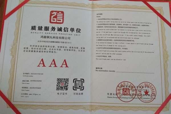 公司所有產(chǎn)品均通過ISO9001 **質(zhì)量認(rèn)證,2014年更獲得了第三屆中國金屬磨料行業(yè)具有影響力品牌-華尊獎